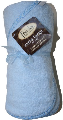 Frenchie Mini Couture Extra Large 40"x30" Absorbent Hooded Towel, Solid Blue with Swirl Print